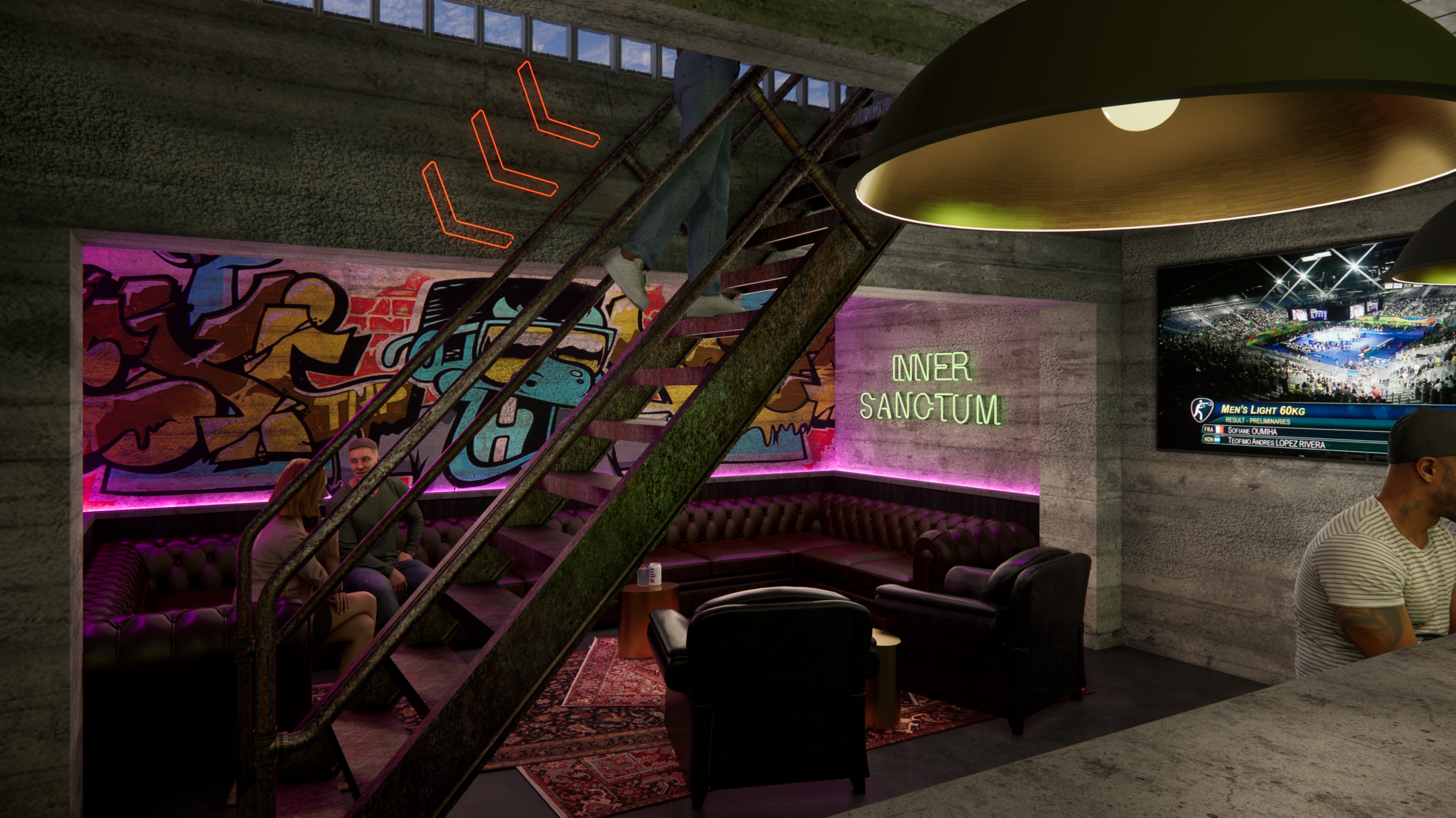 JEMA unveils Inner Sanctum, a private entertainment venue at 2831 Olive Street. Original board-formed concrete walls and ceilings remain intact, while the building’s original boiler is deconstructed and reimagined as the front and back bar. Graffiti and layered finishes introduce an “industrial glam” atmosphere that blends grit with sophistication. Construction is slated to begin later this year.