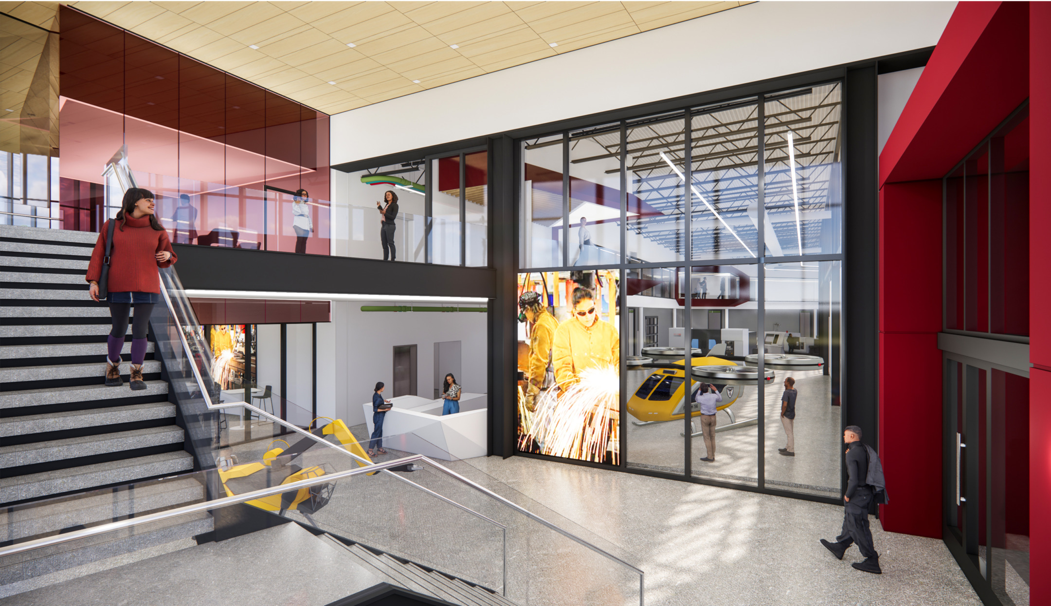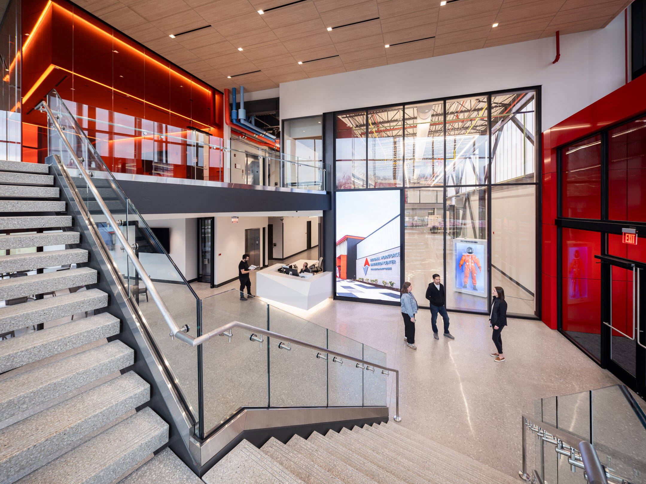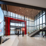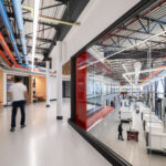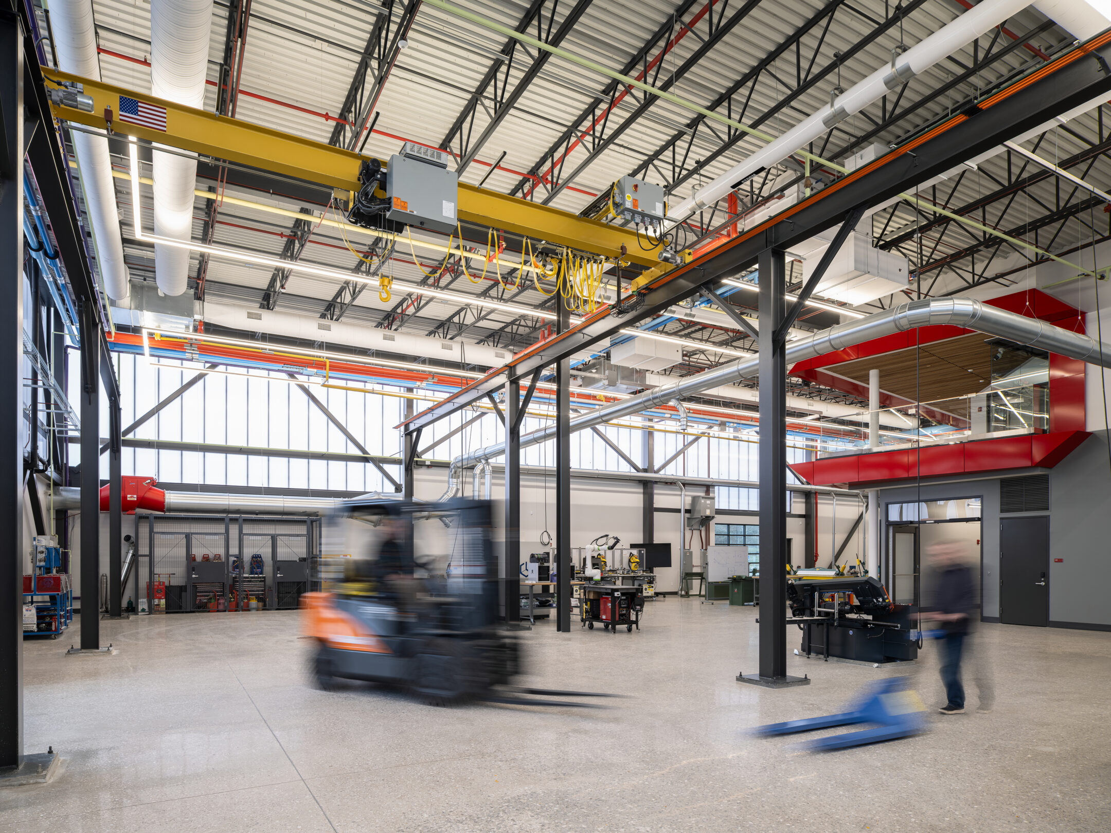 At the heart of the project is a 10,000 SF welding and advanced manufacturing lab, purpose-built to accommodate specialized equipment, flexible work zones, and robust infrastructure. Surrounding this core are multi-functional classrooms and support spaces that encourage collaboration between students, instructors, and industry partners. Visual transparency throughout the building connects learning environments and reinforces the relationship between theory and practice.