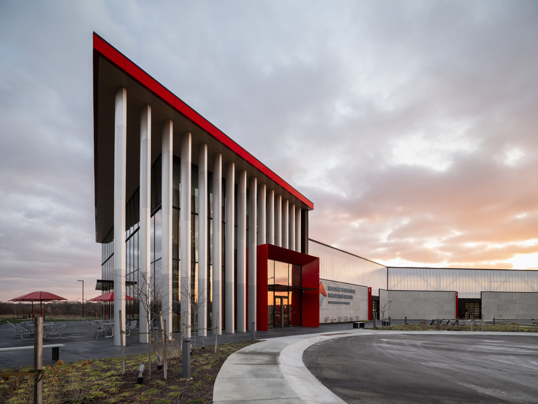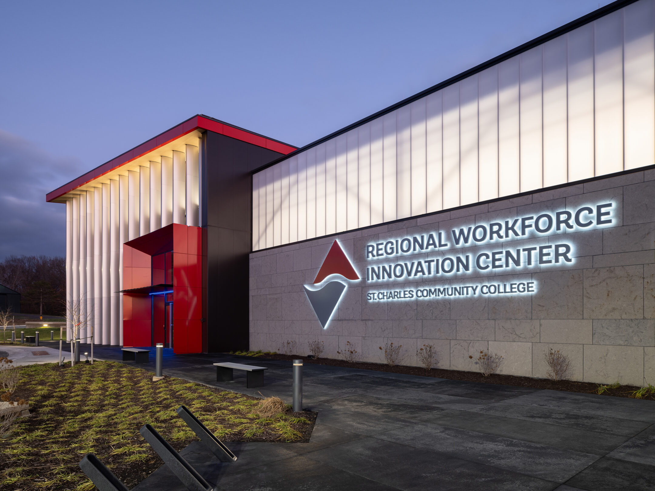 The St. Charles Community College Regional Workforce & Innovation Center serves as the flagship building for the College’s new west campus, establishing a forward-looking hub for workforce development and technical education. Designed as a state-of-the-art training facility, the building supports hands-on learning while remaining adaptable to evolving industry needs.