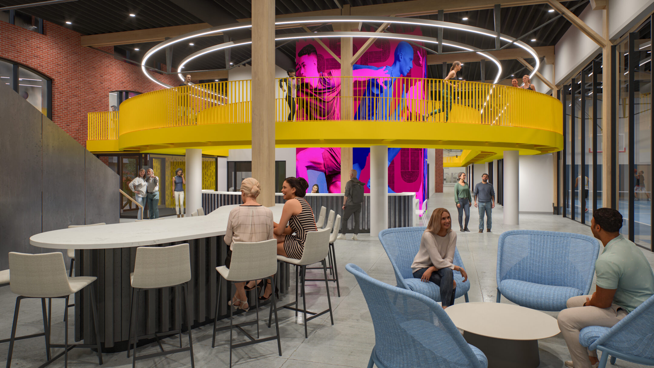 The 53,000 square foot, two-level facility will feature a 1/12 mile elevated running track, a state-of-the-art cardio and resistance training area, pickleball and basketball courts, a café, a children’s play area, and an outdoor activity space. Positioned just south of the new City Hall and adjacent to the city’s newest pocket park, the Recreation Center will play a key role in activating the American Car Foundry district and connecting the Historic Main Street and Frenchtown neighborhoods.