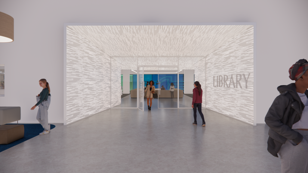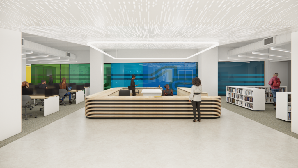 JEMA’s design for St. Louis Community College’s new Florissant Valley Student Library is nearing completion. The 17,000 sq. ft. library is scheduled to open for the Fall 2026 semester. Located within a former shop space, the new library will provide a grand reading room, individual and group study rooms, private computer workspaces, and conference rooms, along with an extensive collection of books and periodicals.